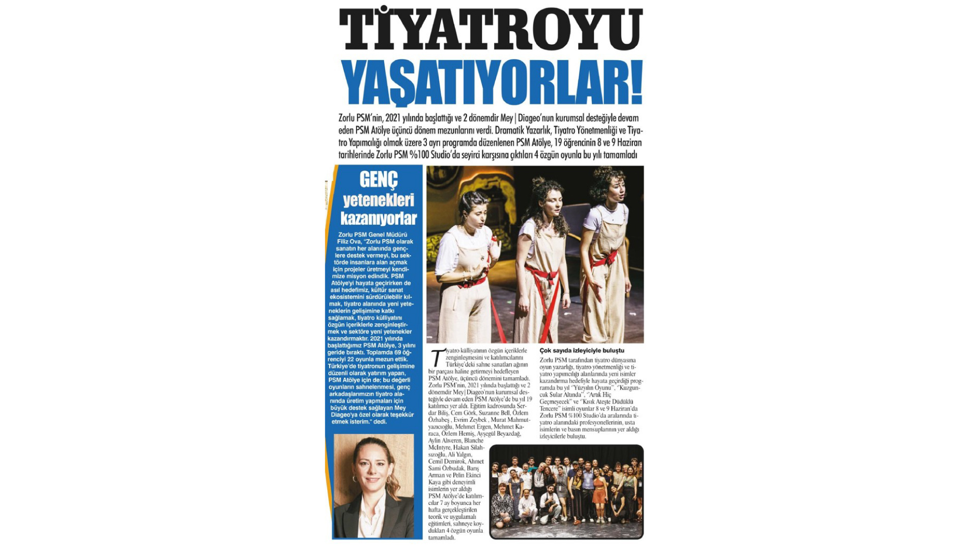 Filiz Ova, General Manager of Zorlu PSM, stated, "At Zorlu PSM, we have made it our mission to support young people in every field of the arts, creating projects that open opportunities for individuals in this sector. Our main goal with PSM Atölye is to make the cultural and artistic ecosystem sustainable, contribute to the development of new talents in theater, enrich the theater repertoire with original content, and bring new talents into the industry. With PSM Atölye, which we started in 2021, we have now completed three years. We have graduated 69 students with 22 plays in total. I would like to extend a special thank you to Mey|Diageo, which has provided great support for the staging of these valuable plays and the production efforts of our young colleagues in the field of theater."