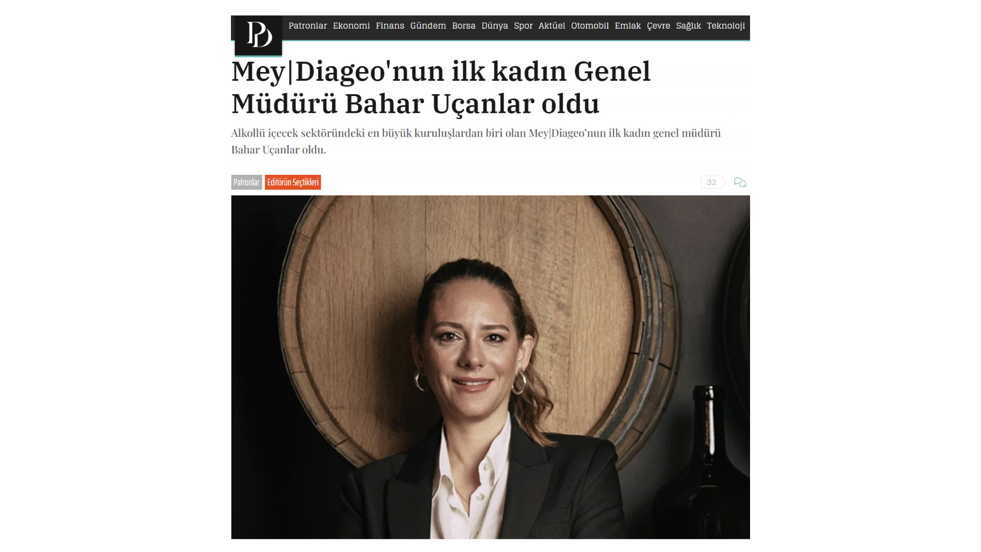 A significant change in top-level positions is occurring at Mey|Diageo, one of Turkey's major players in the alcoholic beverage industry. It has been announced that Bahar Uçanlar will assume the role of the company's new General Manager as of April 1st. Uçanlar will also be the first female General Manager in the company's history.