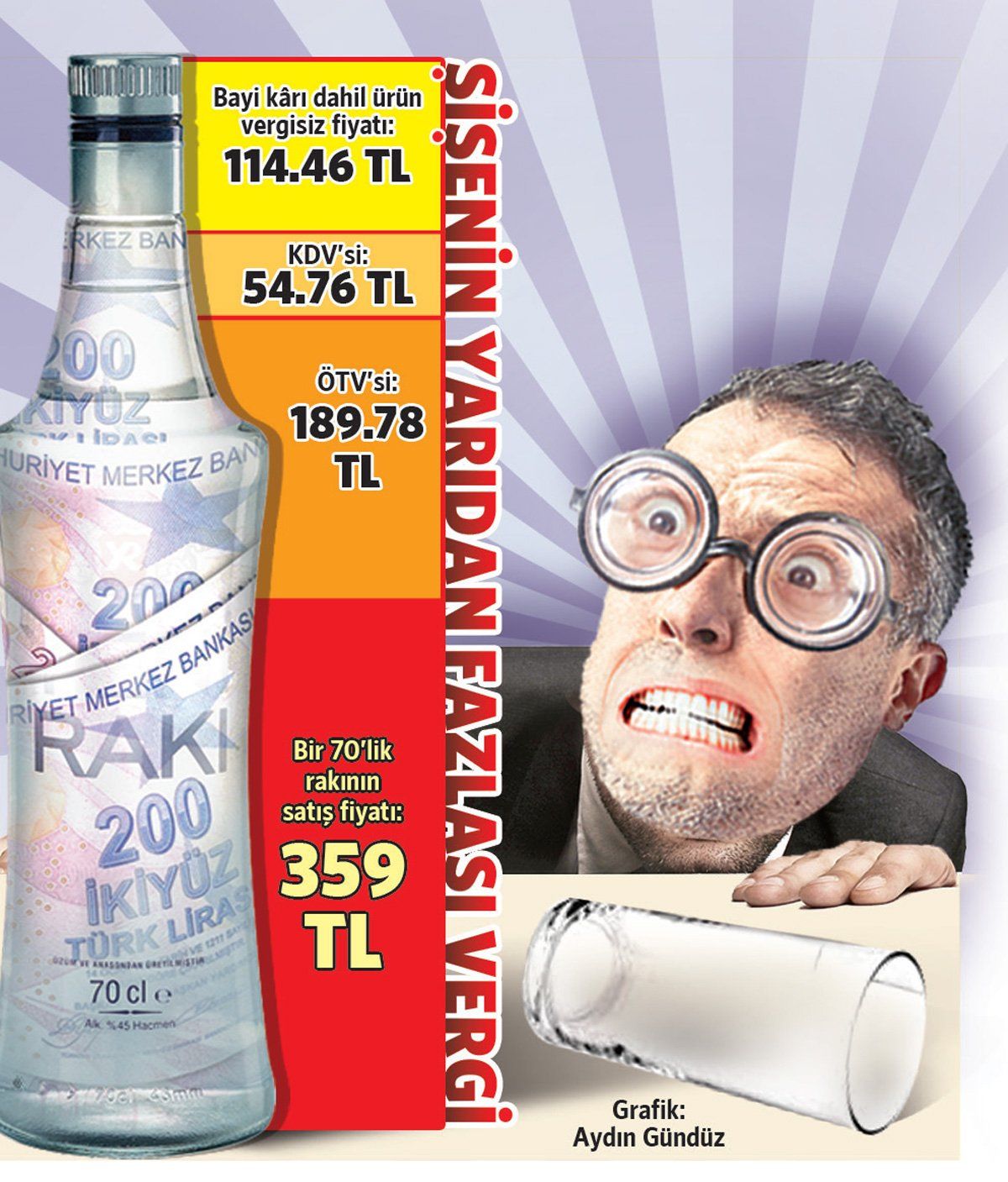Noting that if they reflect all costs, then the price of a bottle of raki could increase up to 450 TL, Levent Komur has stated that after December 2019, there was a 179 percent increase in the gasoline prices, and 179 percent increase in the toothpaste, and 200 percent increase in the beer, and 135 percent increase in the raki.