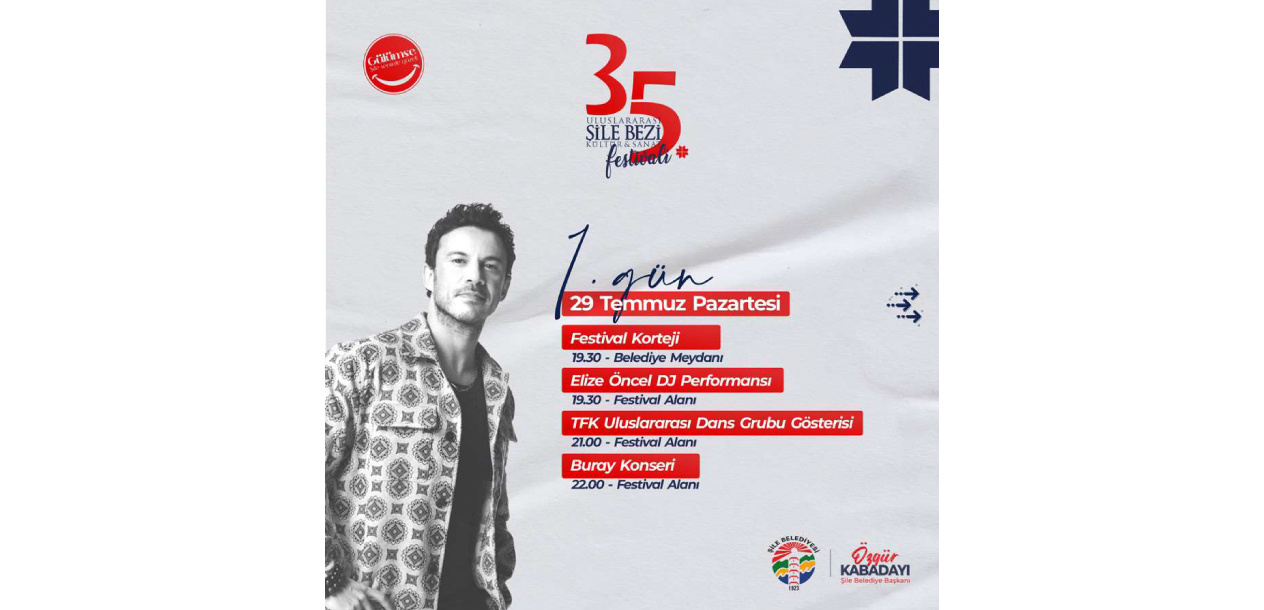 The International Şile Cloth Culture and Art Festival, which will be held for the 35th time this year by Şile Municipality, will host its participants in the unique atmosphere of Şile between 29 July - 11 August 2024. The festival, which will take place at different points of Şile and Ağva, will include talks by masters who love Şile such as Haldun Dormen, Müjdat Gezen, Mustafa Alabora and Cemil İpekçi; "Bir Baba Hamlet" play; Sıla, Melek Mosso, Can Bonomo, Buray, BaBa ZuLa, Volkan Konak, Sena Şener, Atiye, Gazapizm, Zeynep Bakşi and Erdal Erzincan concerts; performances by international dance groups; Şile Cloth fashion shows; exhibitions; workshops.