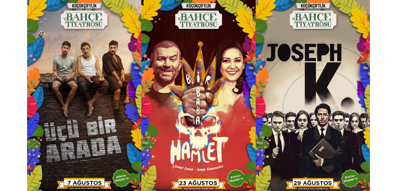 KüçükÇiftlik Bahçe Tiyatrosu’nun ağustos ayı programı, 7 Ağustos’ta Cem Davran, Celil Nalçakan ve Onur Özaydın’ın rol aldığı Üçü Bir Arada oyunuyla başlayacak. 15 Ağustos’ta Levent Can, Hande Doğandemir ve Erdem Kaynarca’nın sahneyi paylaştığı Eksik seyirciyle buluşurken Pınar Güntürkün’ün tek kişilik oyunu Herkes Kocama Benziyor, 21 Ağustos’ta sahnelenecek. KüçükÇiftlik Bahçe Tiyatrosu, 22 Ağustos’ta Ayşegül Tekin, Ayşegül Uraz, Meriç Rakalar, Murat Kapu, Volkan Çıkıntoğlu ve Yiğit Sertdemir’in birlikte rol aldığı Yan Dünya’ya; 23 Ağustos’ta Şevket Çoruh ve Günay Karacaoğlu’nu aynı sahnede buluşturan Bir Baba Hamlet’e ev sahipliği yapacak. 25 Ağustos’ta Ahmet Kaynak, Mehmet Konu, Mertcan Ertürk, Metin Alpargun, Muhammed Türkoğlu, Onur Şenol ve Selen Şenay’ın birlikte rol aldığı Güzel Son sahnelenirken 29 Ağustos’ta ise Mert Fırat, Didem Balçın, Onur Dilber ve Özgün Aydın’ın sahneyi paylaştığı Joseph K. oyunu tiyatroseverlerle buluşacak.