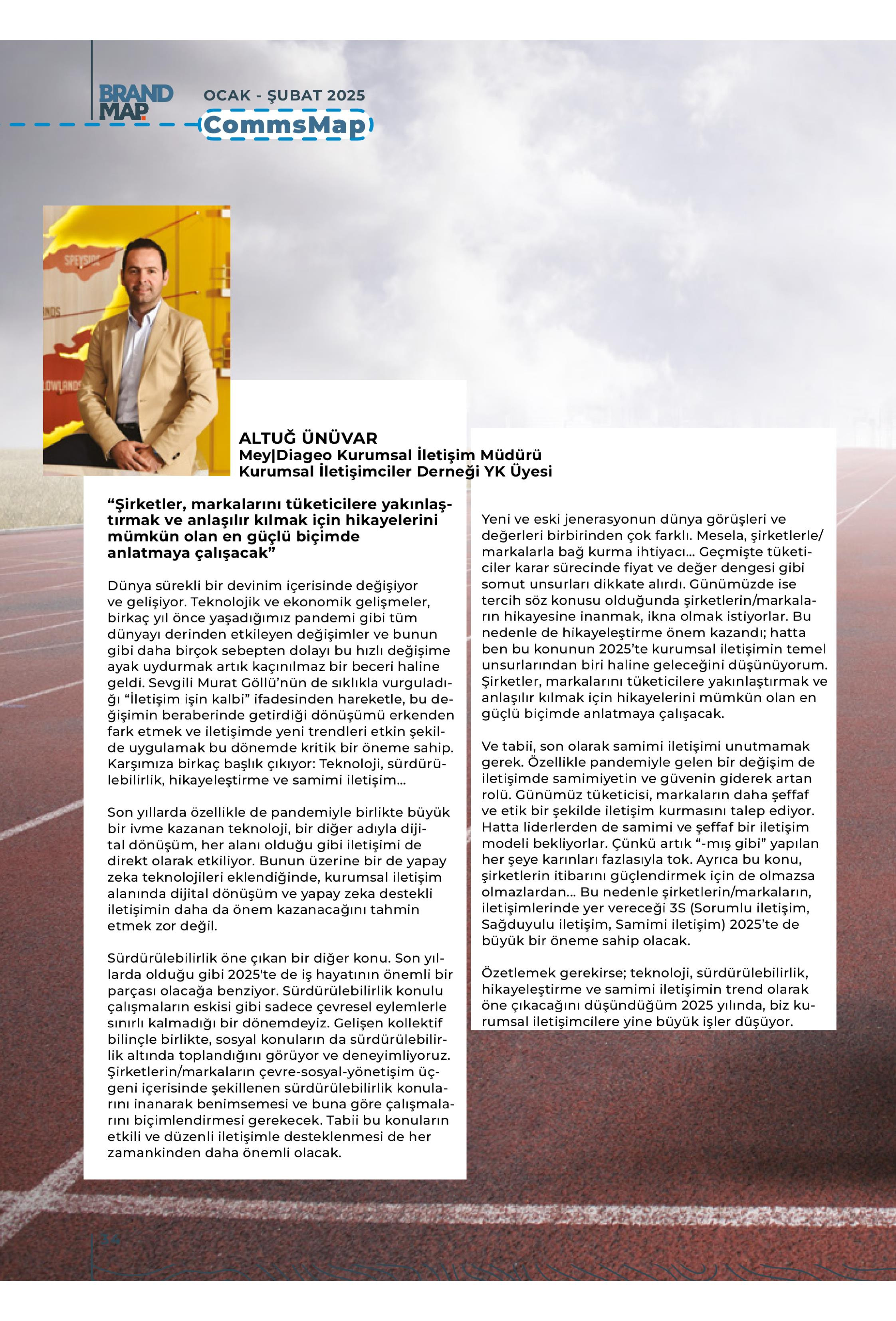BrandMap'in bu sayısında CommsMap'te, kurumsal iletişimcilerin 2025 yılında karşılaşacağı fırsatları ve meydan okumaları ele aldık. Konuyu daha geniş bir perspektiften değerlendirebilmek adına yazı içinde Mey|Diageo Kurumsal İletişim Müdürü Altuğ Ünüvar, Ford Otosan Kurumsal İletişim ve Sürdürülebilirlik Lideri Burçak Türkeri, ÜNLÜ&Co Kurumsal İletişim ve Pazarlama Kıdemli Direktörü Levent Ulusoy ve Boyner Group Kurumsal İletişim Direktörü Selen Tokcan Hacaloğlu'nun da görüşlerine yer verdik.