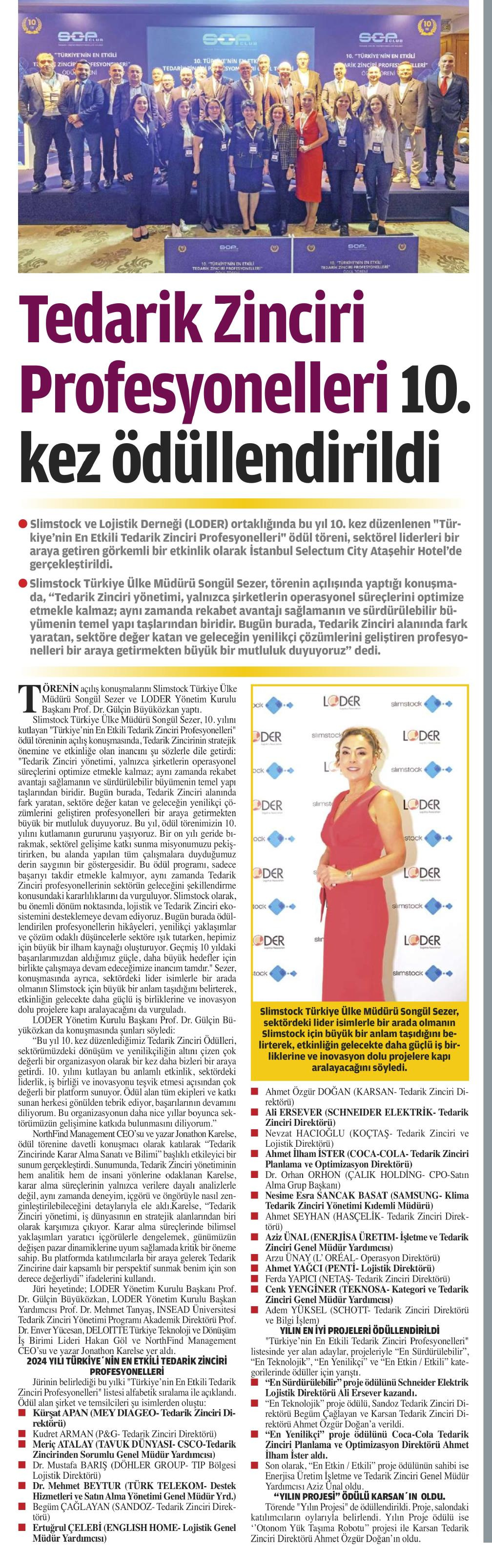 Slimstock ve Lojistik Derneği (LODER) ortaklığında bu yıl 10. kez düzenlenen "Türkiye'nin En Etkili Tedarik Zinciri Profesyonelleri" ödül töreni, sektörel liderleri bir araya getiren görkemli bir etkinlik olarak İstanbul Selectum City Ataşehir Hotel'de gerçekleştirildi.