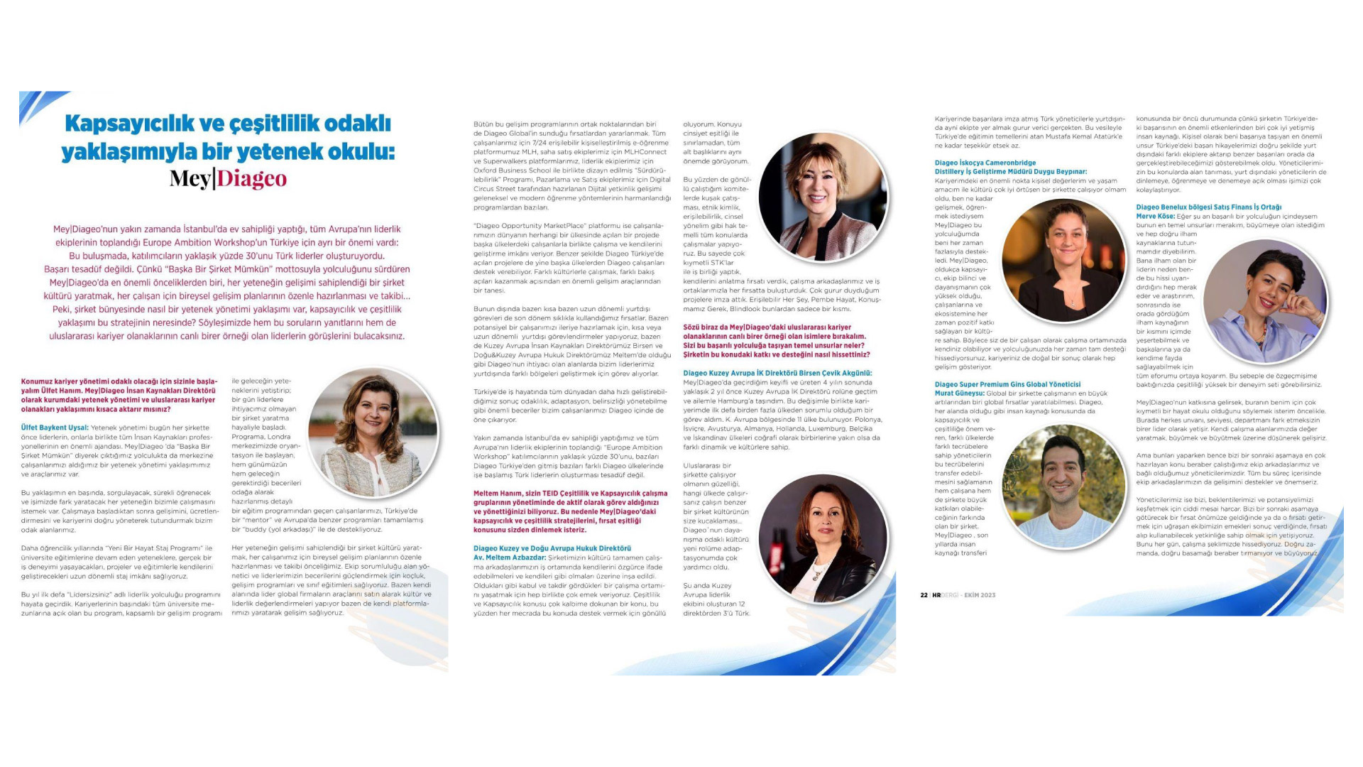 Diageo Kuzey Avrupa İK Direktörü Birsen Çevik Akgünlü: Mey Diageo'da geçirdiğim keyifli ve üreten 4 yılın sonunda yaklaşık 2 yıl önce Kuzey Avrupa İK Direktörü rolüne geçtim ve ailemle Hamburg'a taşındım. Bu değişimle birlikte kariyerimde ilk defa birden fazla ülkeden sorumlu olduğum bir görev aldım. K. Avrupa bölgesinde 11 ülke bulunuyor. Polonya, İsviçre, Avusturya, Almanya, Hollanda, Luxemburg, Belçika ve İskandinav ülkeleri coğrafi olarak birbirlerine yakın olsa da farklı dinamik ve kültürlere sahip.