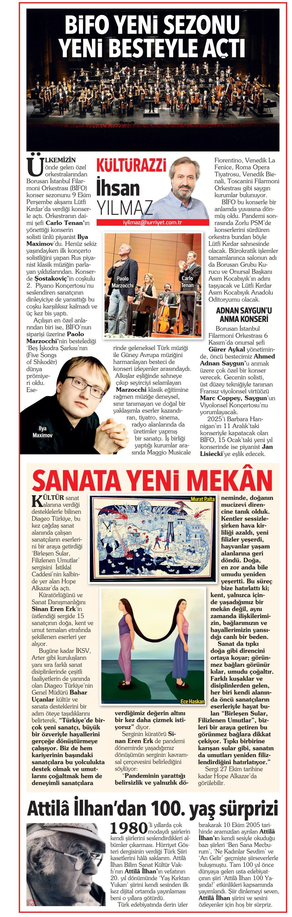 Bu süreç bize hatırlattı ki; kent, yalnızca içinde yaşadığımız bir mekân değil, aynı zamanda ilişkilerimizin, bağlarımızın ve hayallerimizin yansıdığı canlı bir beden. Sanat da tıpkı doğa gibi direncini ortaya koyar; görünmez bağları görünür kılar, umudu çoğaltır. Farklı kuşaklar ve disiplinlerden gelen, her biri kendi alanında öncü sanatçıların eserleriyle hayat bulan 'Birleşen Sular, Filizlenen Umutlar', bizleri bir araya getiren bu görünmez bağlara dikkat çekiyor." Sergi 27 Ekim tarihine kadar Hope Alkazar'da görülebilir.